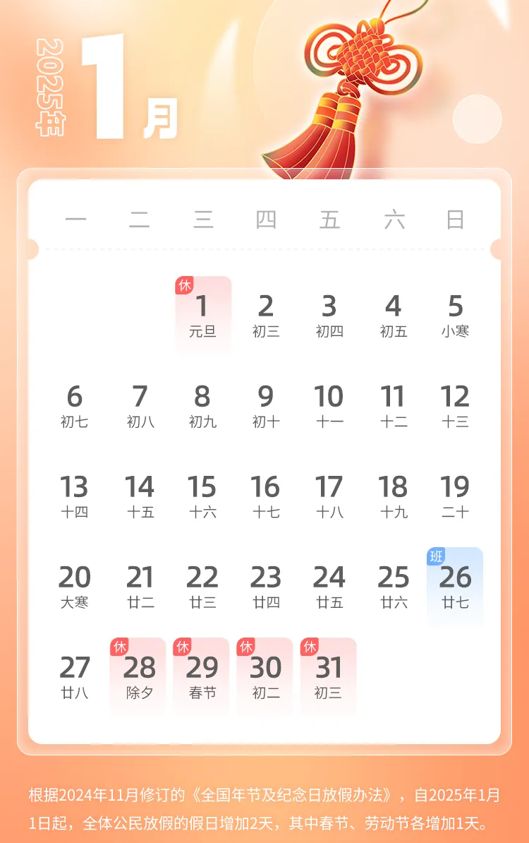2025年 元旦放假安排 日期:2024-12-22 23:35:06 / 人氣:387 2025元旦放假安排 2025年1月1日(周三)放假1天 不調(diào)休 END 上海云屹國際 上一篇:2024年 國慶節(jié)放假時(shí)間安排← 下一篇:2025年 春節(jié)放假時(shí)間安排 → 推薦內(nèi)容 Recommended 2026年五一勞動(dòng)節(jié)放假時(shí)間 2026年春節(jié)放假時(shí)間通知 2026年 元旦放假通知 2026年04月 UPS/FedEx/DHL/TNT 國際快遞 燃油附加費(fèi) 2026年03月 UPS/FedEx/DHL/TNT 國際快遞 燃油附加費(fèi) 2026年02月 UPS/FedEx/DHL/TNT 國際快遞 燃油附加費(fèi) 相關(guān)內(nèi)容 Related 2026年01月 UPS/FedEx/DHL/TNT 國際快遞 燃油附加費(fèi) 2025年國慶 中秋放假時(shí)間安排 徹底涼涼!買單報(bào)關(guān)出口終結(jié)! 2025年12月 UPS/FedEx/DHL/TNT 國際快遞 燃油附加費(fèi) 2025年11月 UPS/FedEx/DHL/TNT 國際快遞 燃油附加費(fèi) 2025年10月 UPS/FedEx/DHL/TNT 國際快遞 燃油附加費(fèi)